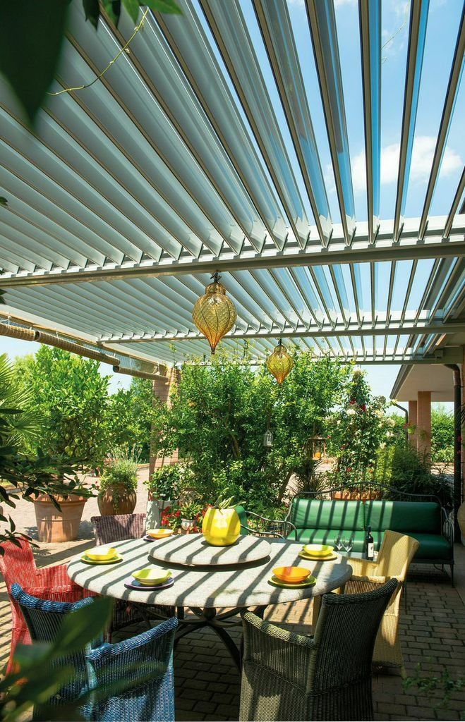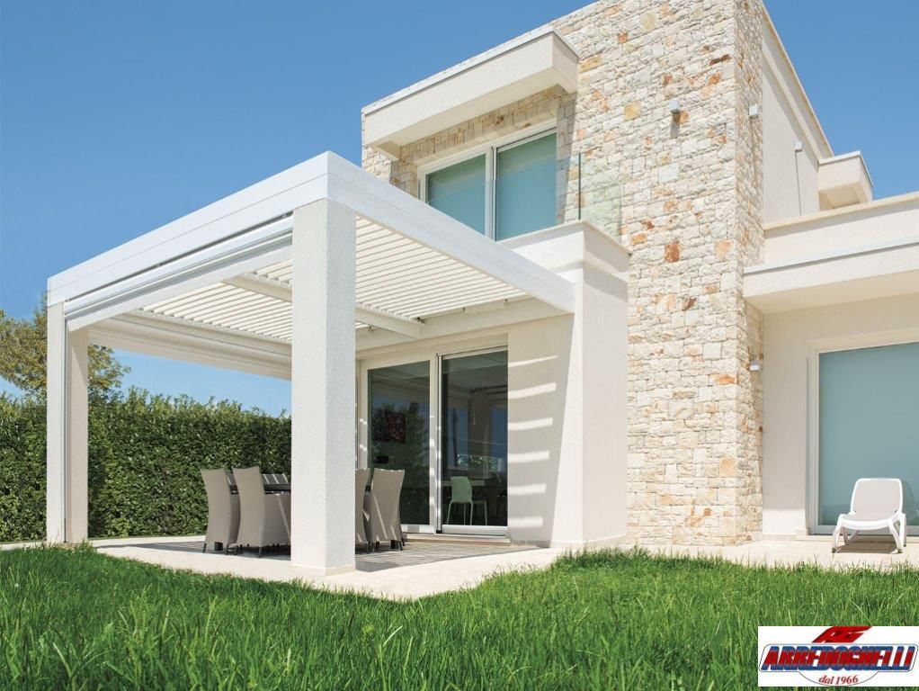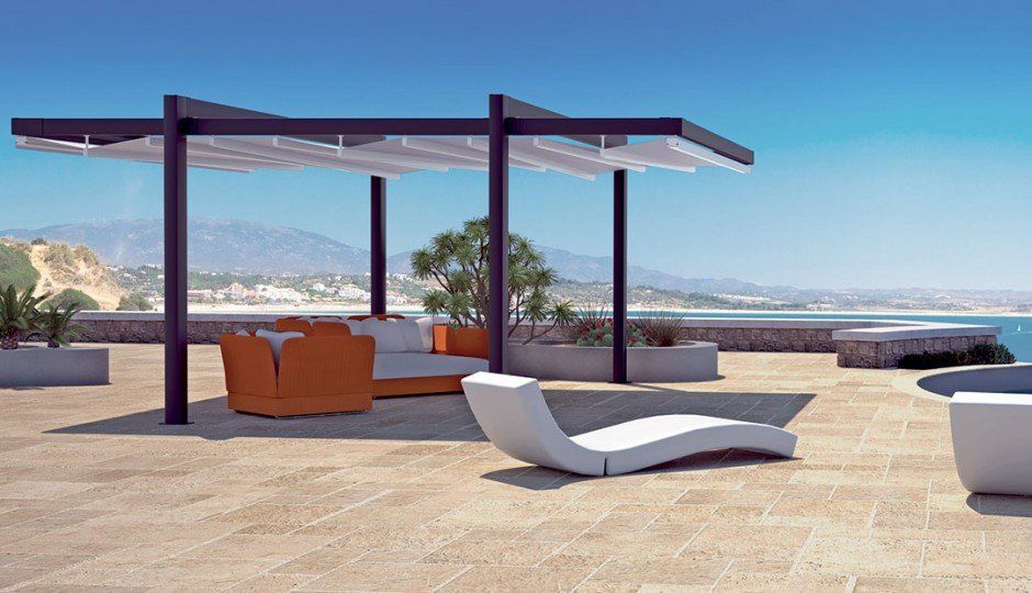 Le pergole Bioclimatiche sono un sistema di copertura che integra le moderne tecnologie in sistemi architettonici all'avanguardia. A differenza delle pergole con coperture fisse o con tenda retraibile , le pergole Bioclimatiche sono composte da lame di alluminio orientabili con meccanismo manuale o motorizzato tramite un telecomando.