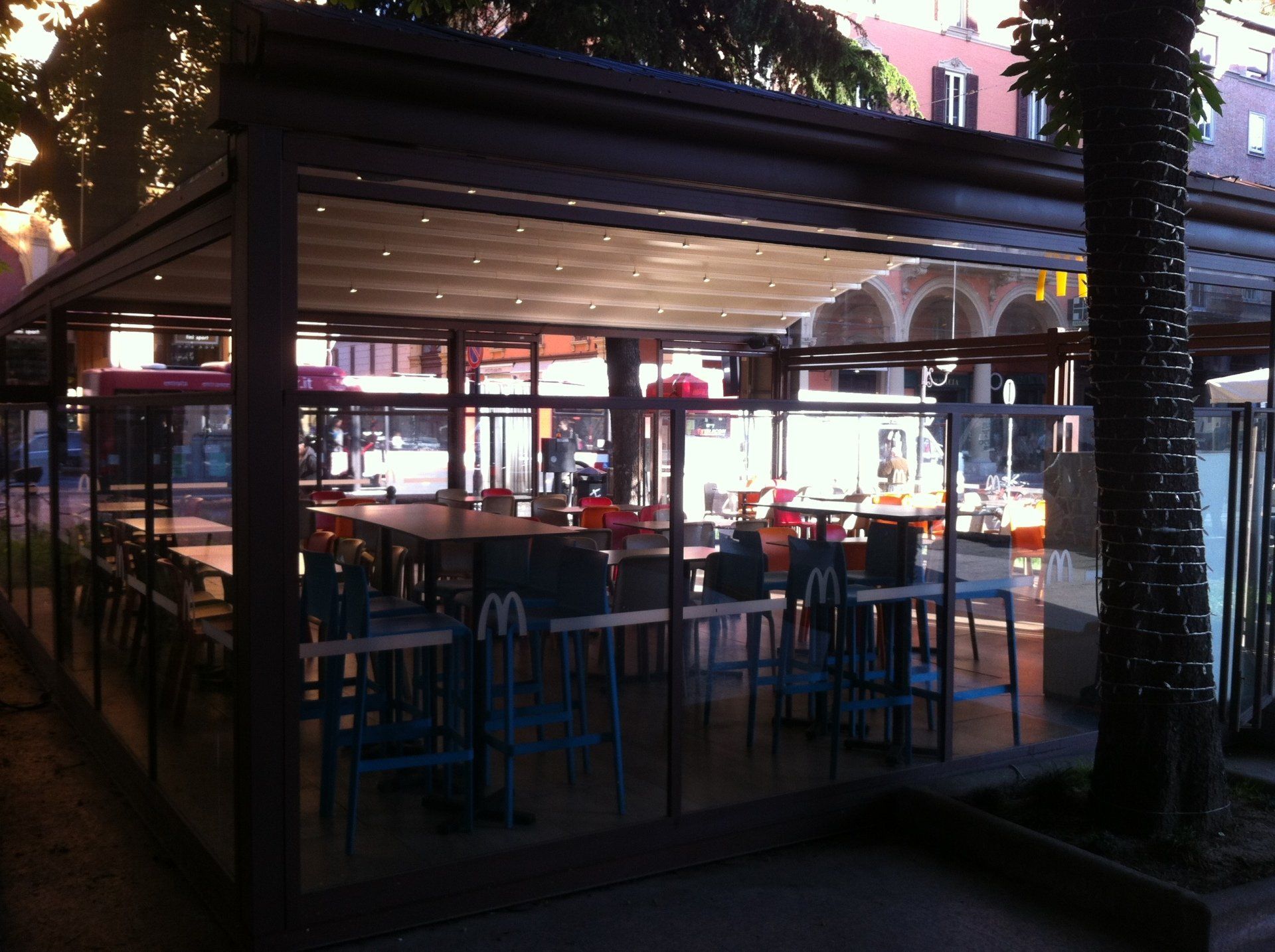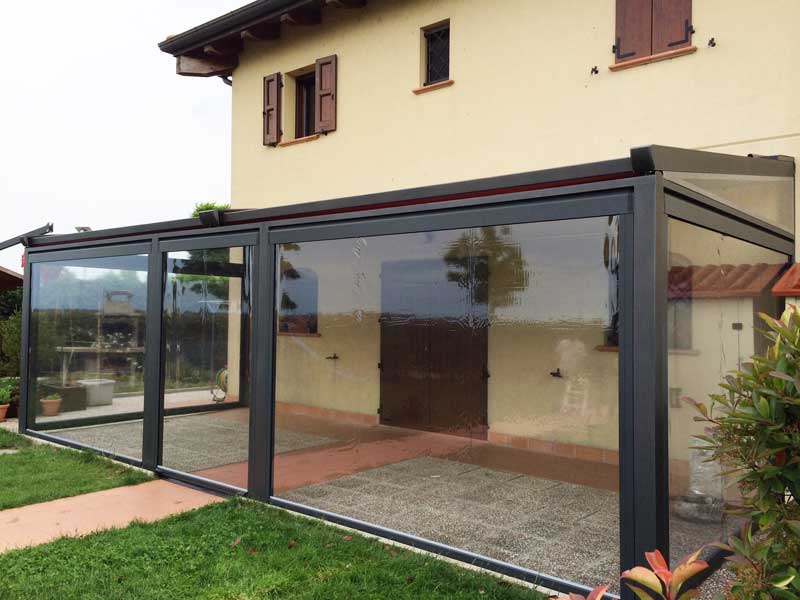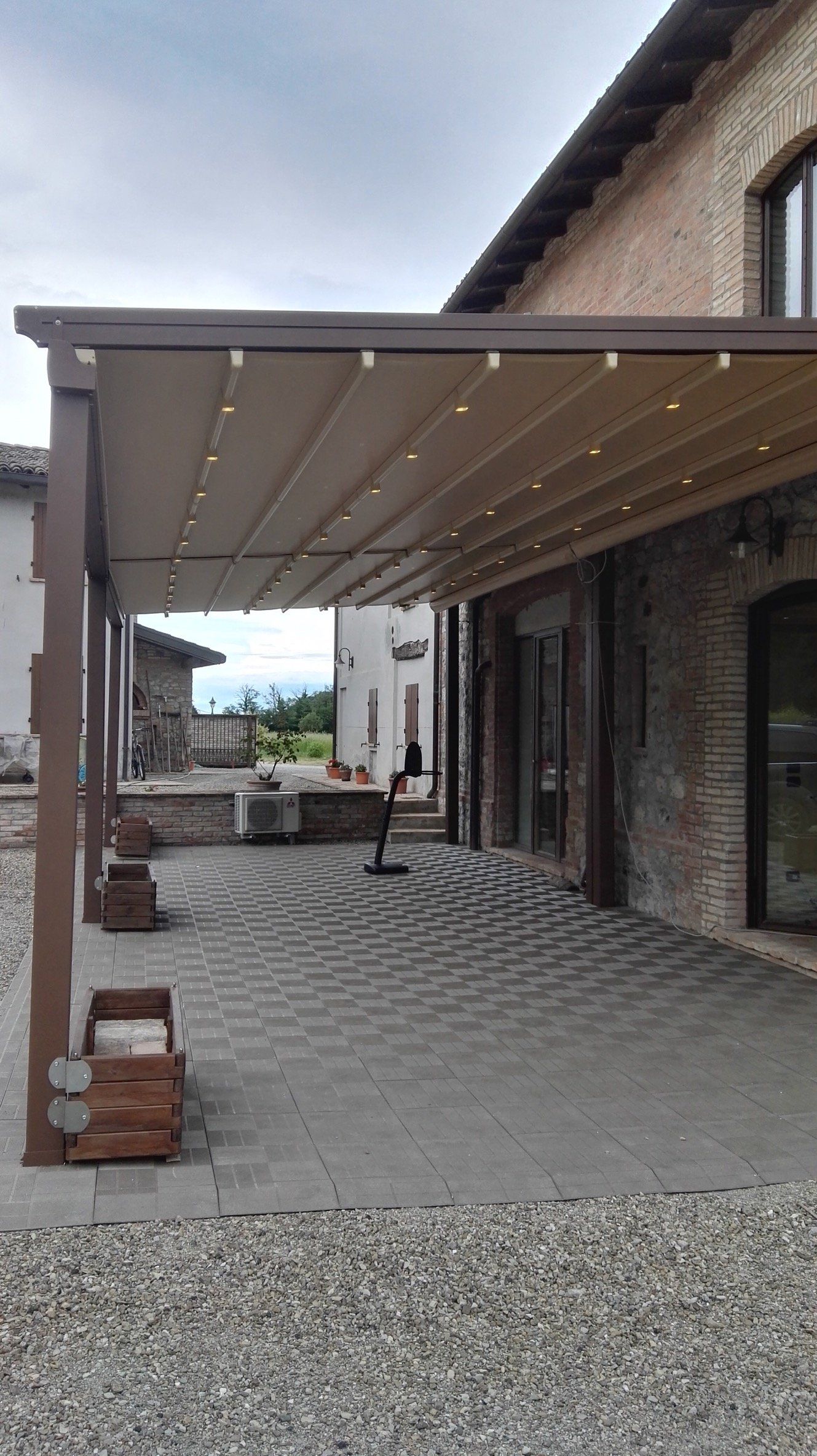 Le pergole Bioclimatiche consentono anche di installare delle tende perimetrali, che permettono di chiudere completamente lo spazio in modo da mantenere costante la temperatura all'interno e proteggere dal vento.